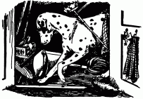 Then they went down into the kitchen to receive the full force of Pongo’s welcome. Missis, though sleepy, was fairly formidable too. There was a whirling mass of humans and dogs on the kitchen hearthrug—until Mrs. Dearly remembered, far too late, that Mr. Dearly’s dress suit would be covered with white hairs.