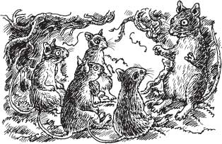 As they approached the brook, towards the big tree in the hollow of whose roots they would make their summer home, the children ran ahead, shouting and laughing. Timothy ran with them, and Mrs Frisby was glad to see that he showed no trace of his sickness. It was an exciting time for them. In the garden they were always alone with themselves, but along the bank of the brook in summer lived five other mice families, all with children. Within a few minutes of arrival, her four had gone with a group of the others down to the water to see the tadpoles swim.