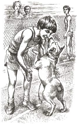 Bang! We were off, only to be called back. Someone had made a false start. We were started for the second time. My feet hit the track. The crowd was yelling. Stray words floated into my brain as I stretched my stride: “Hit the road, Jack!” “Put it in high, Felipe!” One lap, and I was still going strong. Coach was beside me. “Move your arms, Leigh!” he shouted as I passed. I moved my arms and prayed I could breathe to the end of the race. I heard Strider bark. Geneva’s voice reached me. “Leigh! Full out, Leigh!” I tried harder as I rounded the curve on the far side of the track, rounded another, and the race was over. A King City guy had won.