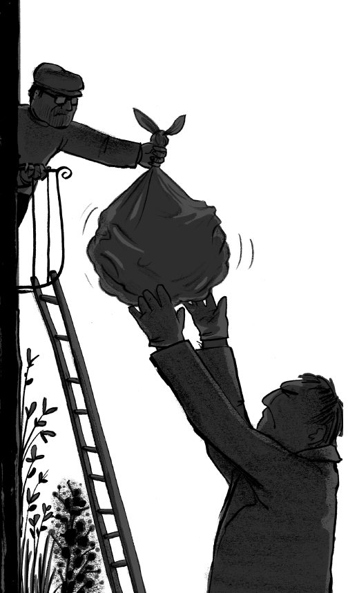 Jeremy had stirred in his sleep, but here again it only needed a few quick movements and he too was on his way out of the window, and then their clothes and shoes were hurled pell-mell after them.