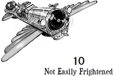 Commander Pott was even more puzzled. “There must be something terribly wrong with your electrical system,” he said sympathetically. “Let’s see what the matter is,” and he went to open the bonnet. But then, for the first time, he caught sight of the thin little radar antenna sticking up in front of the wind-shield, and he stopped in his tracks. “What in heaven’s name . . .” he had just begun, when Mimsie came dashing across from the hotel.