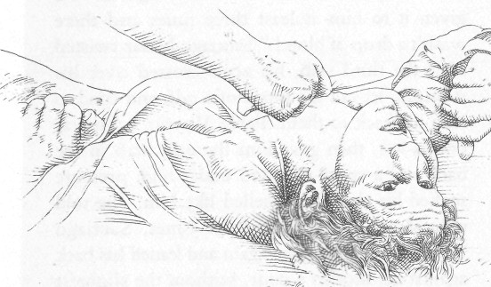 Pedro Vicario pulled out his knife with his slaughterer’s iron wrist and dealt him a second thrust almost in the same place. “The strange thing is that the knife kept coming out clean,” Pedro Vicario declared to the investigator. “I’d given it to him at least three times and there wasn’t a drop of blood.” Santiago Nasar twisted after the third stab, his arms crossed over his stomach, let out the moan of a calf, and tried to turn his back to them. Pablo Vicario, who was on his left, then gave him the only stab in the back and a spurt of blood under high pressure soaked his shirt. “It smelled like him,” he told me. Mortally wounded three times, Santiago Nasar turned frontward again and leaned his back against his mother’s door, without the slightest resistance, as if he only wanted to help them finish killing him by his own contribution. “He didn’t cry out again,” Pedro Vicario told the investigator. “Just the opposite: it looked to me as if he was laughing.” Then they both kept on knifing him against the door with alternate and easy stabs, floating in the dazzling backwater they had found on the other side of fear. They didn’t hear the shouts of the whole town, frightened by its own crime. “I felt the way you do when you’re galloping on horseback,” Pablo Vicario declared. But they both suddenly woke up to reality, because they were exhausted, and yet they thought that Santiago Nasar would never fall. “Shit, cousin,” Pablo Vicario told me, “you can’t imagine how hard it is to kill a man!” Trying to finish it once and for all, Pedro Vicario sought his heart, but he looked for it almost in the armpit, where pigs have it. Actually, Santiago Nasar wasn’t falling because they themselves were holding him up with stabs against the door. Desperate, Pablo Vicario gave him a horizontal slash on the stomach, and all his intestines exploded out. Pedro Vicario was about to do the same, but his wrist twisted with horror and he gave him a wild cut on the thigh. Santiago Nasar was still for an instant, leaning against the door, until he saw his own viscera in the sunlight, clean and blue, and he fell on his knees.