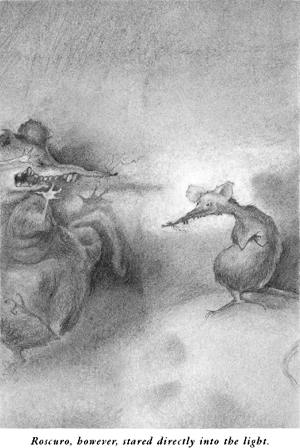 Listener, do you know the definition of the word “chiaroscuro”? If you look in your dictionary, you will find that it means the arrangement of light and dark, darkness and light together. Rats do not care for light. Roscuro’s parents were having a bit of fun when they named their son. Rats have a sense of humor. Rats, in fact, think that life is very funny. And they are right, listener. They are right.