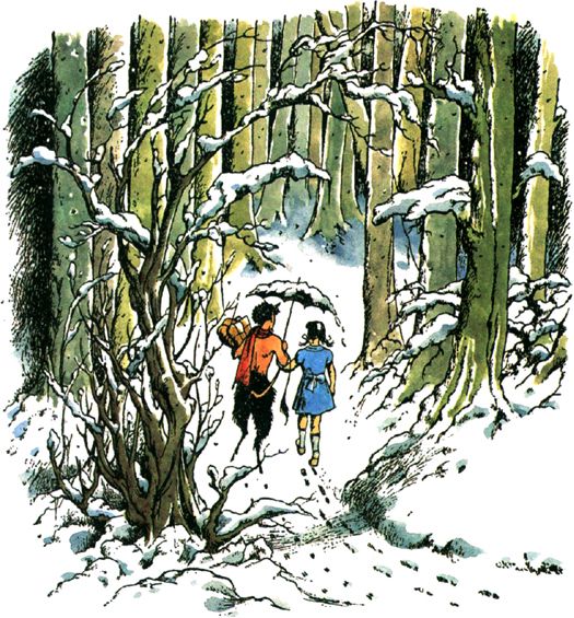 “Meanwhile,” said Mr. Tumnus, “it is winter in Narnia, and has been for ever so long, and we shall both catch cold if we stand here talking in the snow. Daughter of Eve from the far land of Spare Oom where eternal summer reigns around the bright city of War Drobe, how would it be if you came and had tea with me?”