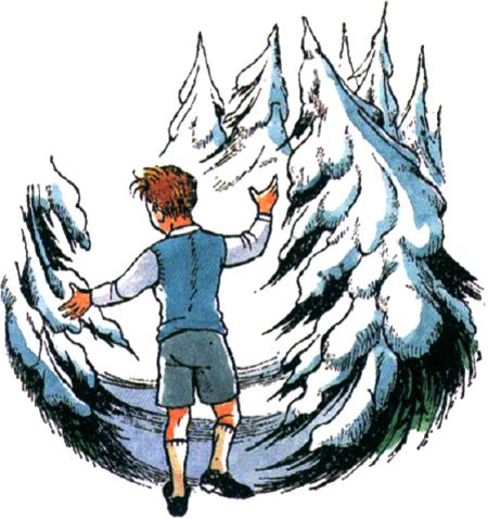 “Thank goodness,” said Edmund, “the door must have swung open of its own accord.” He forgot all about Lucy and went toward the light, which he thought was the open door of the wardrobe. But instead of finding himself stepping out into the spare room he found himself stepping out from the shadow of some thick dark fir trees into an open place in the middle of a wood.