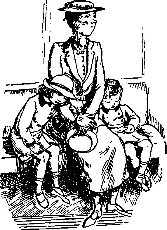Mary Poppins sat between them, offended and silent, and presently, because they were very tired, they crept closer to her and leant up against her sides and fell asleep, still wondering....