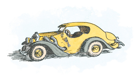 Dr. Carey grabbed the tooth with the pincers again, and this time he pulled so long and so hard and with such determination that the tooth popped out, which was a great relief to everybody, particularly to Mr. Clydesdale. The Doctor then led Stuart into another room. From a shelf he took a tiny automobile, about six inches long—the most perfect miniature automobile Stuart had ever seen. It was bright yellow with black fenders, a streamlined car of graceful design. “I made this myself,” Dr. Carey said. “I enjoy building model cars and boats and other things when I am not extracting teeth. This car has a real gasoline motor in it. It has quite a good deal of power—do you think you can handle it, Stuart?”