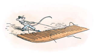 “I ought to take along something to remember my mother by,” he thought. So he crept into his mother’s bedroom where she was still asleep, climbed the lamp cord to her bureau, and pulled a strand of Mrs. Little’s hair from her comb. He rolled the hair up neatly and laid it in the handkerchief with the other things. Then he rolled everything up into a bundle and tied it onto one end of a wooden match. With his gray felt hat cocked jauntily on one side of his head and his pack slung across his shoulder, Stuart stole softly out of the house.