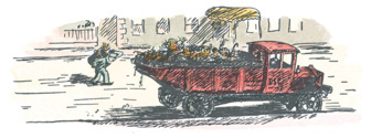 While he was there, waiting for the dog to go away, a garbage truck from the Department of Sanitation drove up to the curb and two men picked up the can. Stuart felt himself being hoisted high in the air. He peered over the side and saw that in another instant he and everything in the can would be dumped into the big truck.