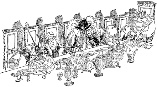 “SCANDALOUS!” shouted the king. “We’ll put a stop to it at once. From now on, by royal command, everyone must eat dinner before the banquet.”