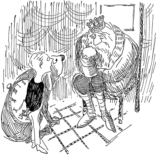 “How nice that would be,” said Azaz, straightening up and adjusting his crown. “Even if they were a bother at times, things always went so well when they were here.” As he spoke he leaned back on the throne, clasped his hands behind his head, and stared thoughtfully at the ceiling. “But I’m afraid it can’t be done.”