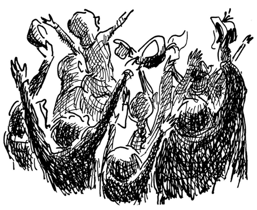 “And, finally, after the long ride back, a triumphal parade (if, of course, there is anything left to parade) followed by hot chocolate and cookies for everyone.” The Humbug bowed low and sat down once again, very pleased with himself.