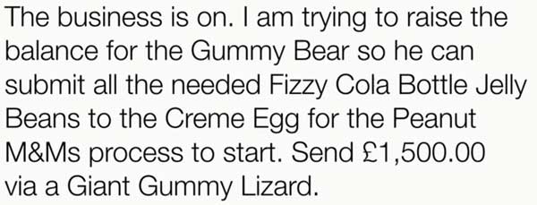 He said, "Dear James Veitch, We shall be shipping Gold to you."