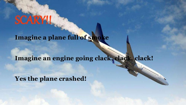 Imagine a big explosion as you climb through 3,000 ft. Imagine a plane full of smoke. Imagine an engine going clack, clack, clack. It sounds scary.