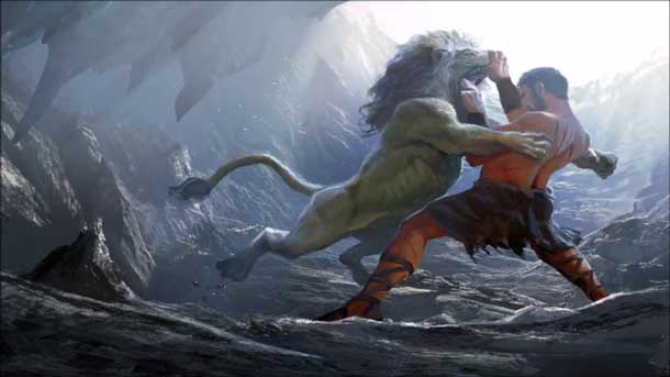 Next came three more beastly foes, each requiring a clever strategy to defeat. The carnivorous Stymphalian birds nested in an impenetrable swamp, but Hercules used Athena’s special rattle to frighten them into the air, at which point he shot them down. No mortal could stand before the Cretan bull’s mad rampage, but a chokehold from behind did the trick. And the mad King Diomedes, who had trained his horses to devour his guests, got a taste of his own medicine when Hercules wrestled him into his own stables. The ensuing feast calmed the beasts enough for Hercules to bind their mouths.